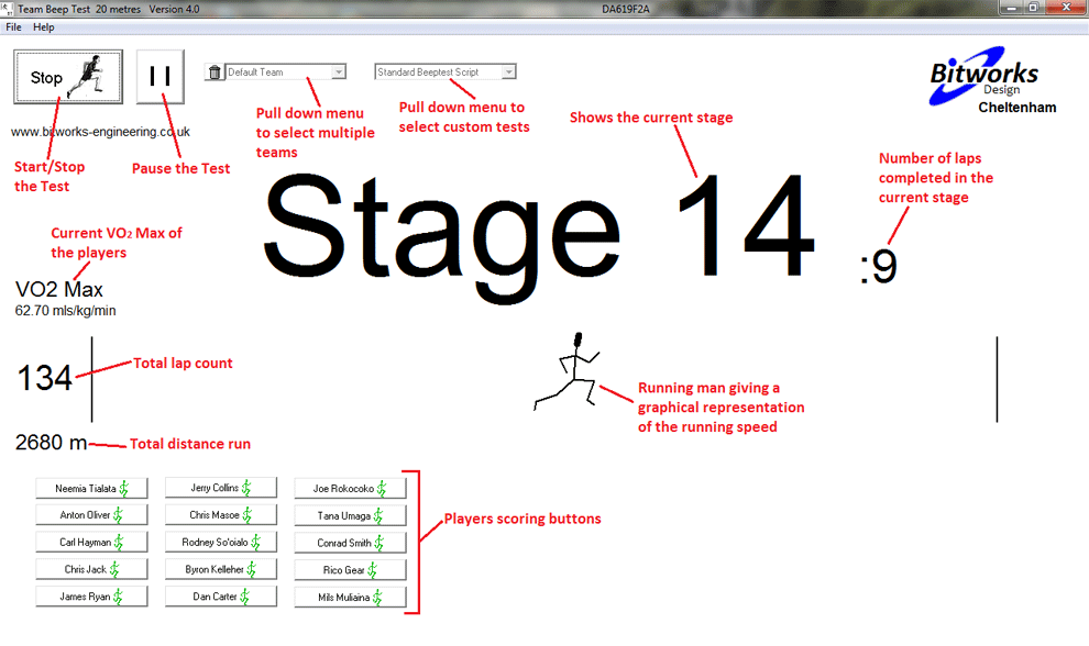 Topend Sports has teamed up with the software developer Bitworks to provide the most versatile and useful software for conducting beep (bleep) type tests and saving results in real time directly onto your computer.