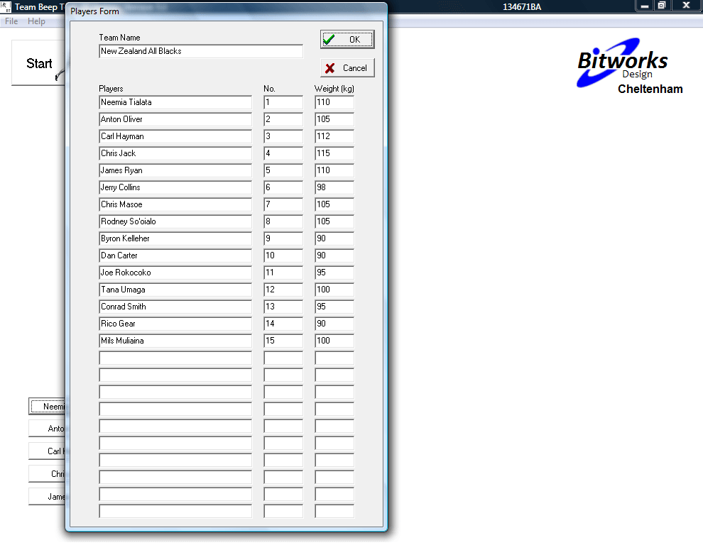 - TEAM FUNCTIONS — If you are using the software with a team or other group, there are many useful features. You can enter all team player names, and during the test player buttons provide one click recording of results. These results can be graphically displayed as soon as the test is complete, comparing player results over time. The player results text file can also be imported into excel for further analysis. The latest version has the added capacity to track multiple teams of players (useful for schools with many classes or sporting clubs with many teams).